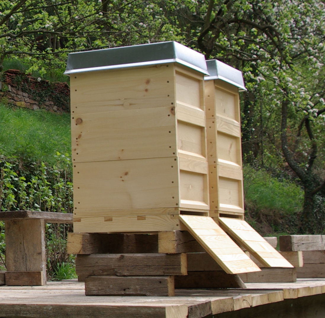 Der Anspruch des Imkers ist da schon ein anderer. Wer will schon mit der Kettensäge Honig ernten? Der Imker will möglichst einfach an den Bienenvölkern arbeiten können und Honig ernten ohne das komplette Wabenwerk zerstören zu müssen, also eine Trennung zwischen Brutraum und Honigraum.